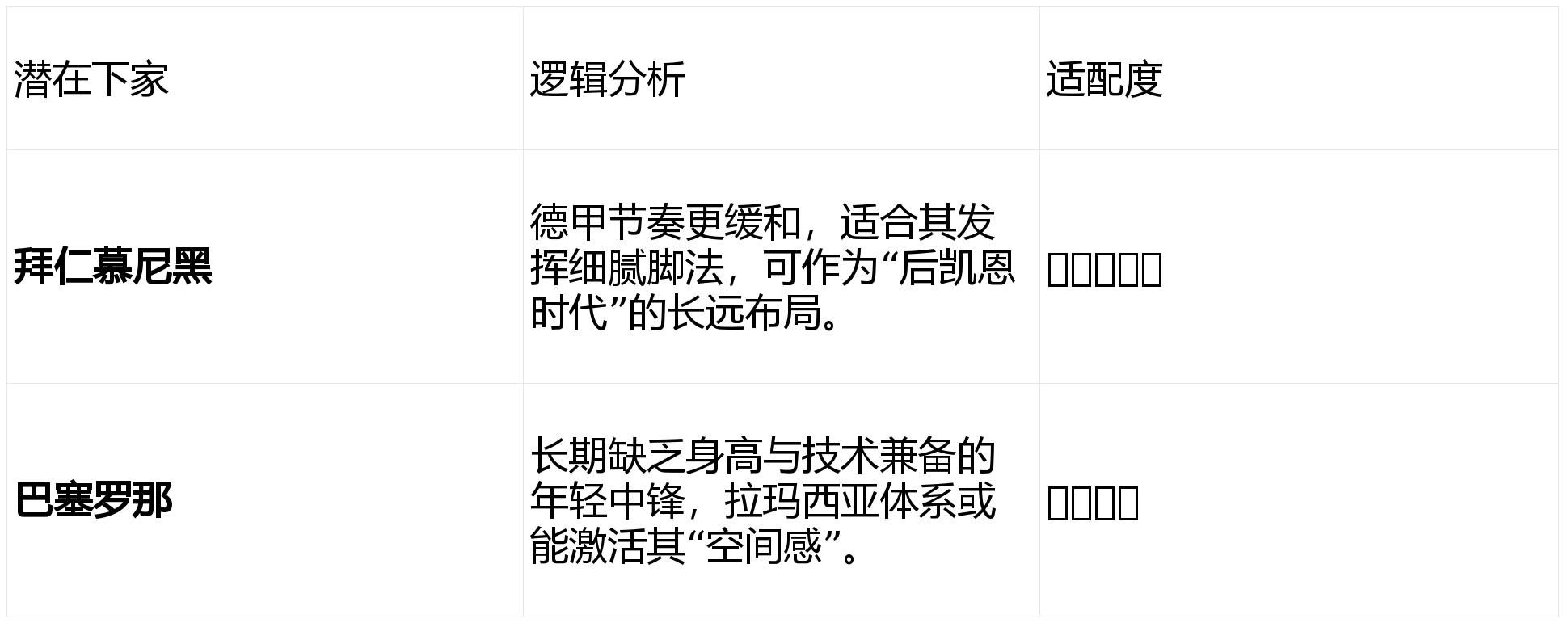 去拜仁,或许是他重回巅峰的最佳路径。德甲那种强调传控、防线相对靠后的环境,能给他这种技术型高中锋更多的转身和处理球空间。正如当年在斯图加特,他能在禁区内跳舞。而在巴萨,财务压力可能让他背负更多的舆论重担,风险依然巨大。