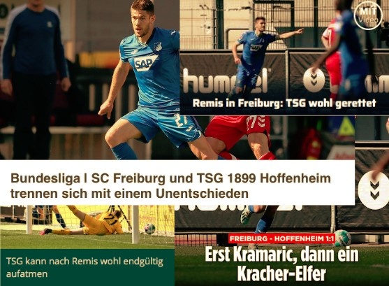 4.可以松一口气了:霍芬海姆在客场与弗赖堡1-1战平,后者确定保级,前者也几乎得救了。