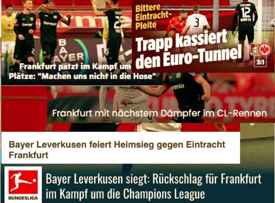 2.勒沃库森在主场3-1击败法兰克福,“欧洲雄鹰”在欧冠席位争夺战中再遭挫折,而药厂继续稳固欧战席位。