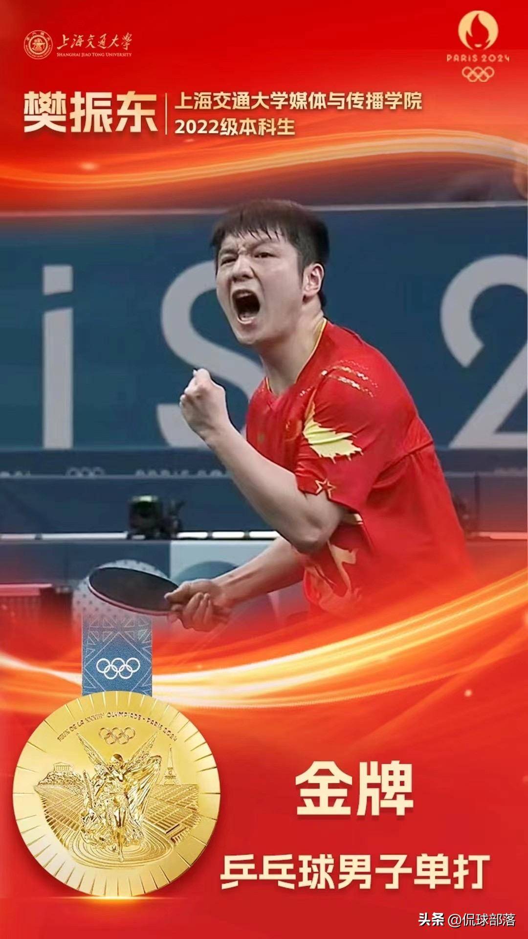 巴黎奥运会男单决赛对阵瑞典小将莫雷加德,樊振东先丢一局,后连赢三局,再丢一局,最终4比2取胜,首夺奥运单打金牌,实现大满贯梦想。