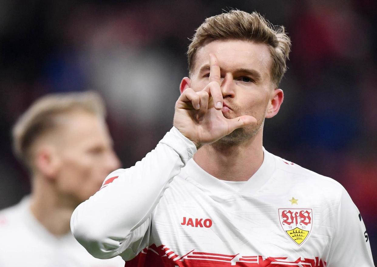 随后比赛更加火爆,第44分钟,斯图加特再次发动中场快速反击,左边路传中配合默契,勒威林禁区前沿接球后施展精彩兜射,将比分改写为3:0。仅仅2分钟后,补时阶段,斯图加特通过中场断球迅速反击,昂达夫突破三人包夹,低射命中,为球队在半场结束时锁定4:0的巨大优势。