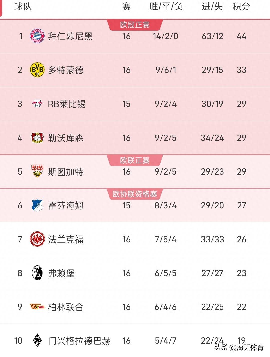 德甲直播,德甲赛程,德甲积分榜,拜仁vs多特直播,德甲比分预测/专为中文球迷打造的德甲资讯站,覆盖2025赛季直播入口、赛程安排、积分榜更新与竞彩比分预测,聚焦拜仁、多特、莱比锡、勒沃库森等焦点球队。拜仁造惨案,1月12日德甲联赛第16轮比赛,拜仁主场迎战沃尔夫斯堡,最终实力强大的拜仁用一场8-1大胜结束,另外一场门兴4-0大胜奥格斯堡排名杀入前10名,目前拜仁保持16不败战绩以44分优势遥遥领先第二名多特11分,不出意外本赛季拜仁再次登顶德甲。药厂,莱比锡,斯图加特都是29分。