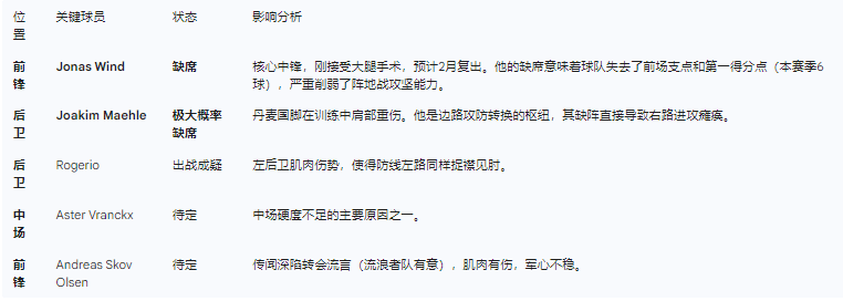 虽然从纸面实力和历史底蕴来看,沃尔夫斯堡占据绝对优势,且市场普遍期待其在主场触底反弹,但本报告持极其谨慎的悲观态度。