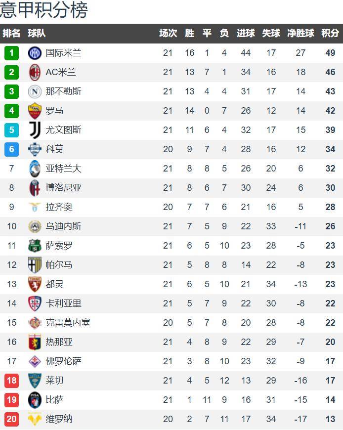 意甲21轮战罢,排名第二的球队是米兰双雄,国际米兰49分排名第一,AC米兰46分紧随其后,卫冕冠军那不勒斯43分排名第三。不得不说孔蒂称不上名帅,压根不会玩不来双线作战。齐沃成为国际米兰新帅,本赛季是巨大挑战,若能率队成功夺得意甲冠军,相信这是教练层面的完美更新换代。以国际米兰的实力和3分领跑优势,蓝黑军团会是本赛季意甲冠军最有力争夺者。