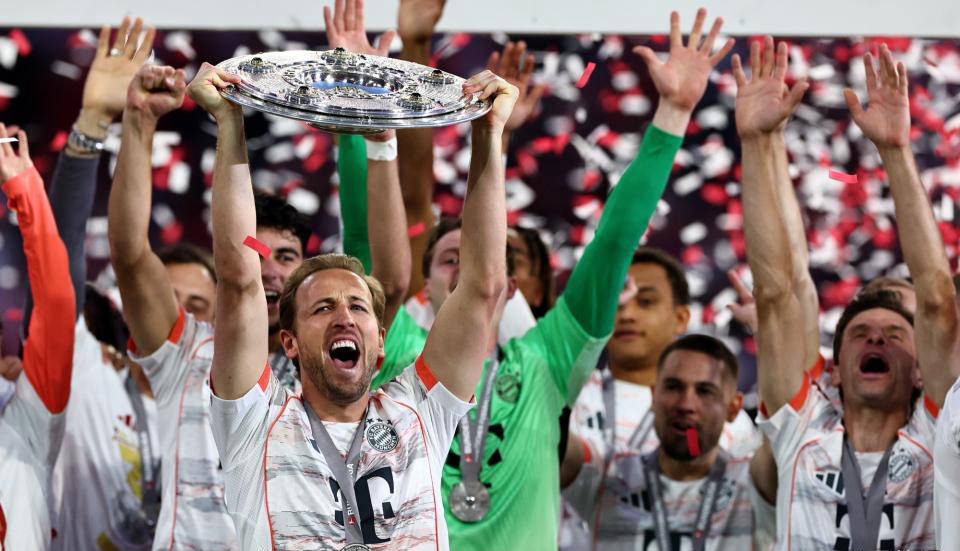 这一刻,也代表着凯恩和漫长无冠生涯的告别。在此前的足球生涯中,他曾七次获得亚军,无数次与冠军擦肩而过。如今,这段挣扎和不甘都随风而去,被美好的胜利所取代。令人感动的是,凯恩随后将奖盘递给了另一位队友——来自英格兰的戴尔。这是戴尔的职业生涯首次登顶,也是凯恩第一次真正品尝到夺冠的滋味。在这个荣耀时刻,只有最懂他的戴尔能完全体会到凯恩心中的激动与欣慰。