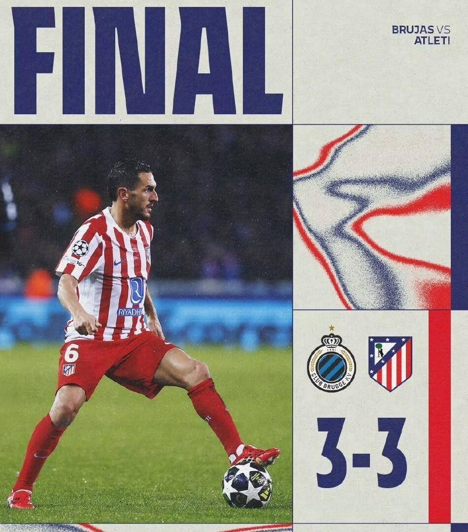 眼看胜利在望,马竞却在最后时刻遭遇致命一击,第89分钟,布鲁日发动快速反击,奥涅迪卡送出直塞,替补登场的前锋措利斯获得单刀机会,他冷静推射破门,完成了绝平。 最终,这场一波三折的比赛以3-3的平局收场,双方将晋级悬念留到了次回合。