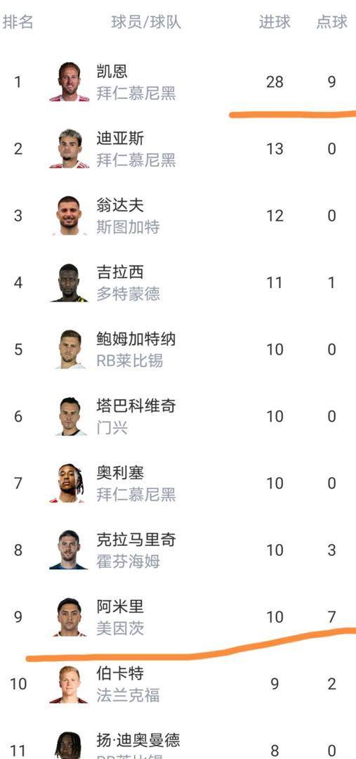 个人数据的榜单上,有一个名字的光芒掩盖了所有。 哈里·凯恩。 在完成梅开二度后,他本赛季的德甲进球数已经达到了28个。 这是什么概念? 排名第二的,是他的队友路易斯·迪亚斯,进了12个球。 第三名是斯图加特的翁达夫,也是12球。 凯恩一个人的进球数,比第二名和第三名加起来还要多4个。 他场均超过1.2球的效率,在德甲历史上同期也打破了由罗伯特·莱万多夫斯基保持的纪录。 金靴的归属,似乎已经失去了悬念。 唯一的悬念是,这位32岁的英格兰射手,最终能把单赛季进球纪录刷新到怎样的高度。 莱万在2020-21赛季创造的41球神话,看起来已经不再遥不可及。