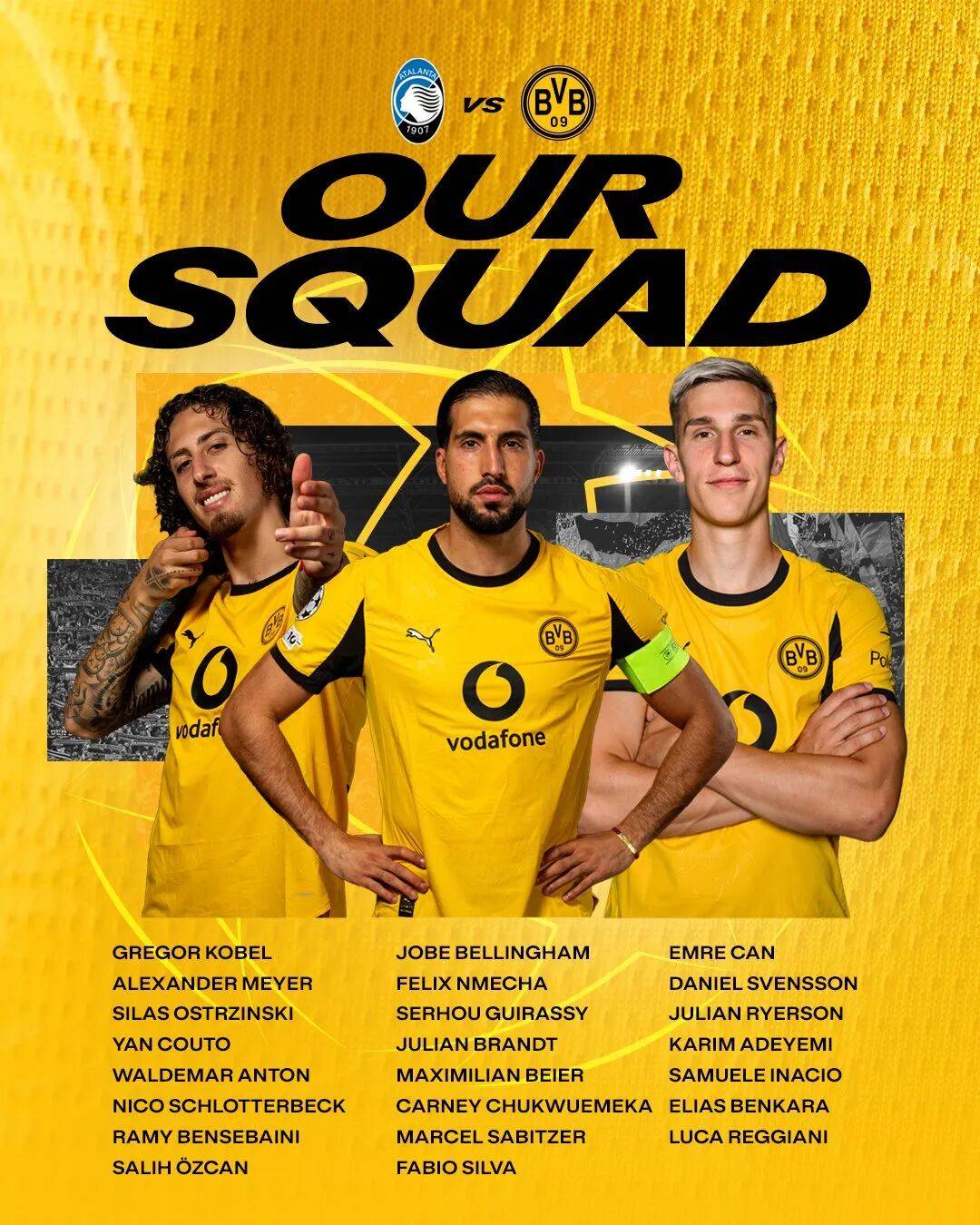 多特蒙德的两位队长斯洛特贝克和埃姆雷詹进行了最后一次训练,两人都前往贝尔加莫有望复出,马内和聚勒因伤缺席,2024年从亚特兰大加盟多特蒙德至今风波未平的17岁后卫伊纳西奥也在大名单中。虽然和拜仁慕尼黑的比赛近在眼前,但凯尔表示不会为了榜首大战保存实力,显然欧冠晋级带来的巨大收入和助力德甲力压葡超、西甲保住欧足联积分排名第二的位置至关重要。多特蒙德在欧冠淘汰赛第一轮客场两胜三平七负,两场胜利击败的对手是上赛季的葡萄牙体育和2021/2022赛季的塞维利亚。多特蒙德三次首回合主场两球或以上优势获胜次回合两平一负,全部晋级。多特蒙德客场对阵意大利球队五胜三平十三负。